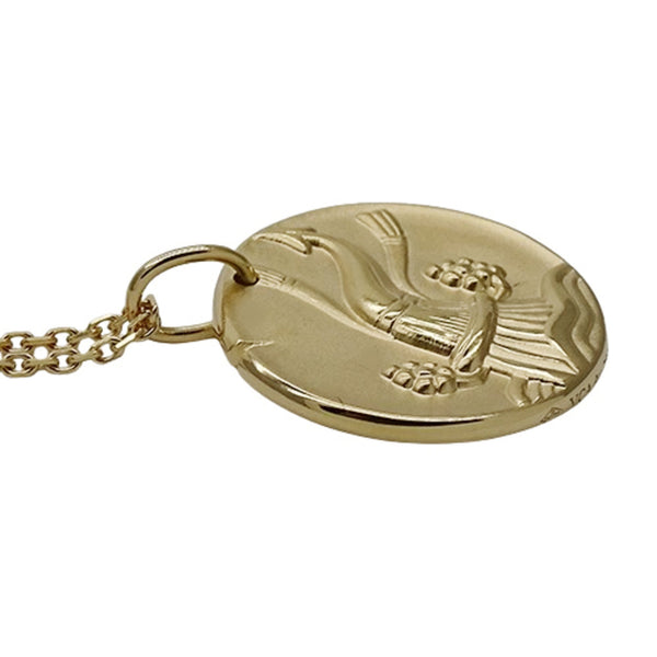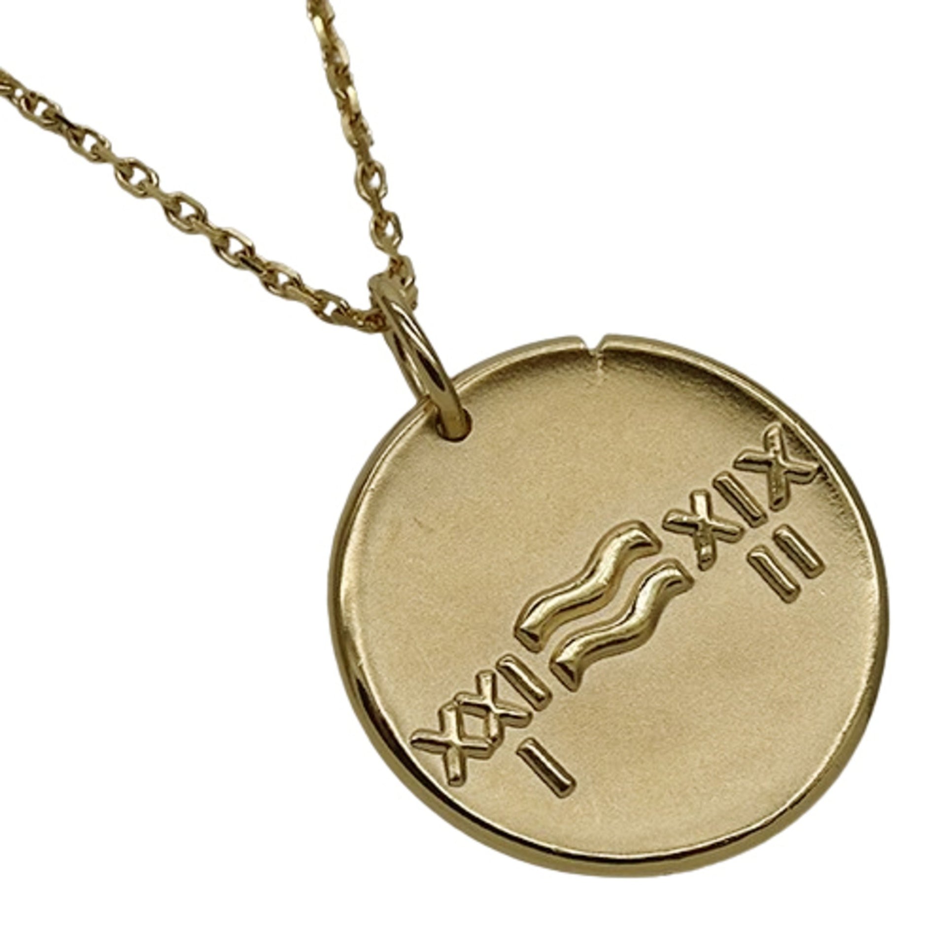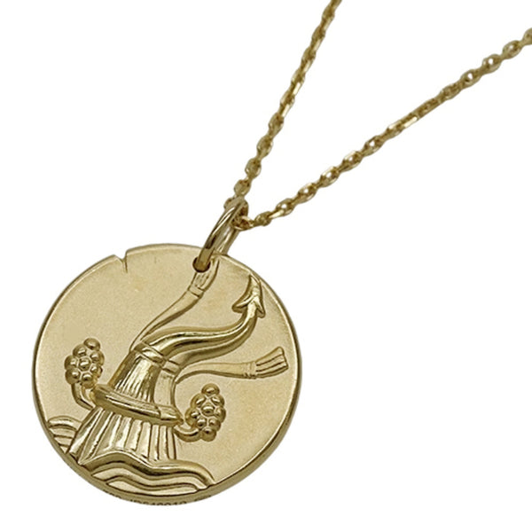 Van Cleef & Arpels women\'s 750YG Zodiac Medal necklace featuring the Aquarius constellation in yellow gold (VCARP7SU00 VCARO3YJ00), polished.