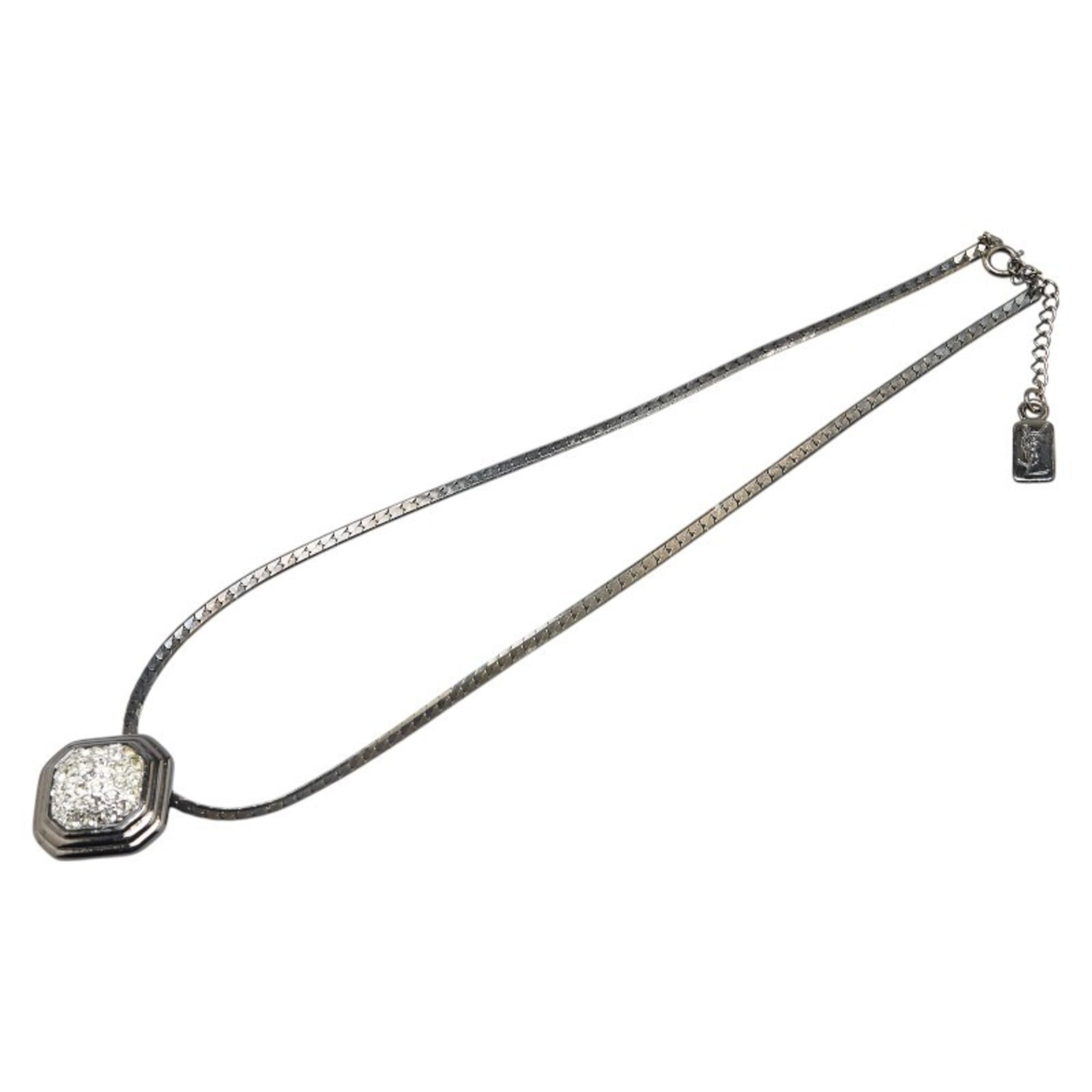 Yves Saint Laurent Saint Laurent Rhinestone Necklace in Silver and Black Metal for Women