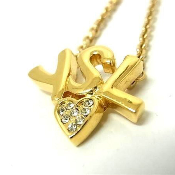 Yves Saint Laurent YSL Heart Necklace in Gold with Rhinestones for Women