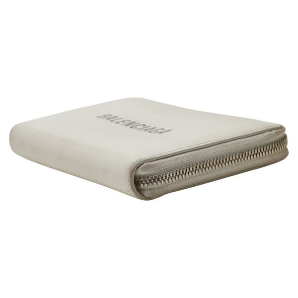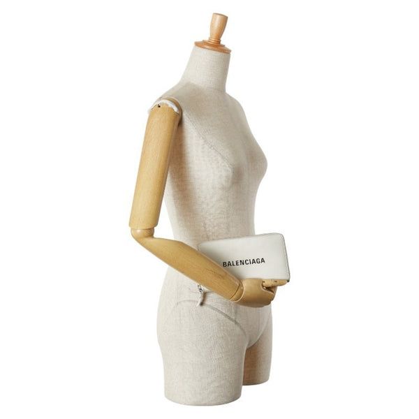 Balenciaga Everyday Long Wallet, Round Zipper, White Leather, Women\'s