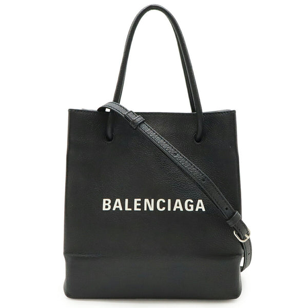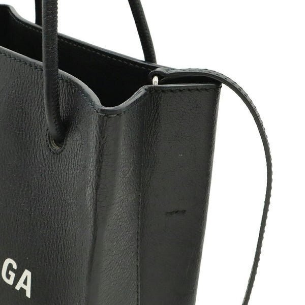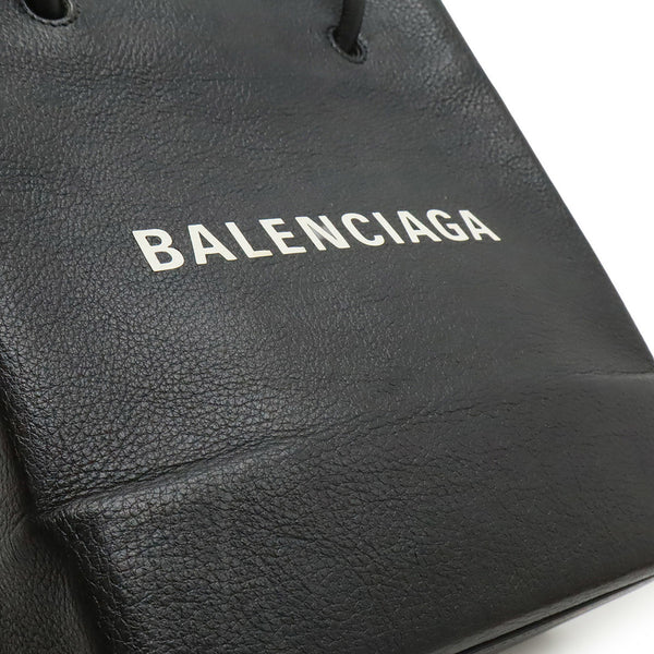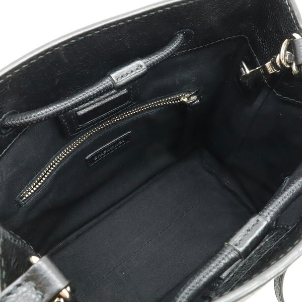 BALENCIAGA Tote XXS Bag Shoulder Leather Black White 555140
