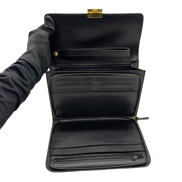 CELINE Men\'s B2 Clutch Bag/Second Handbag in Black Leather with Gold Hardware and Key