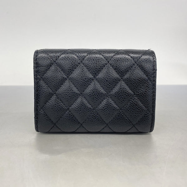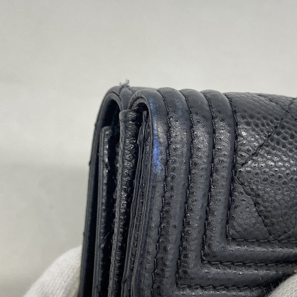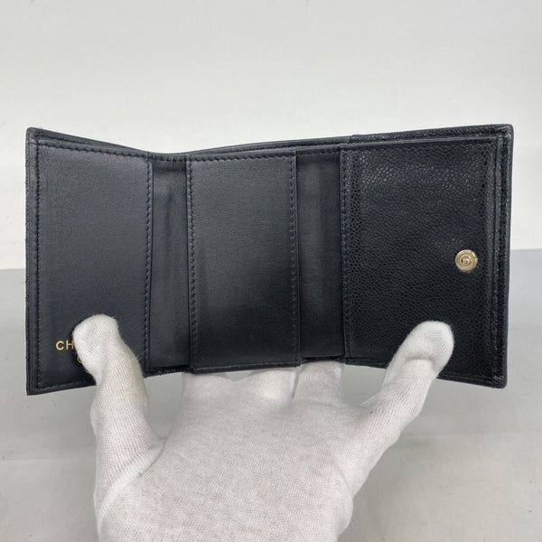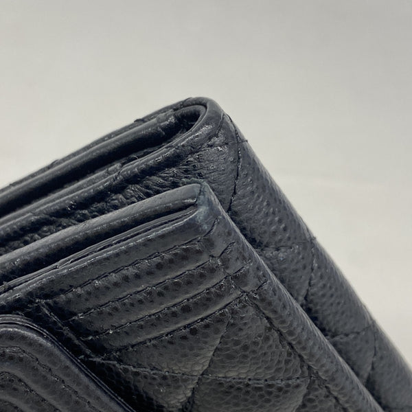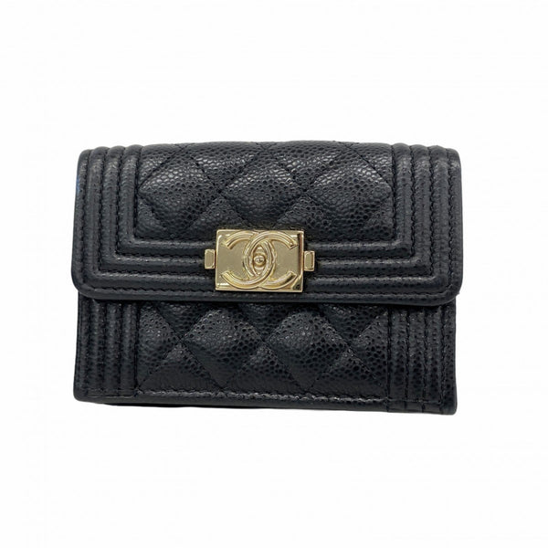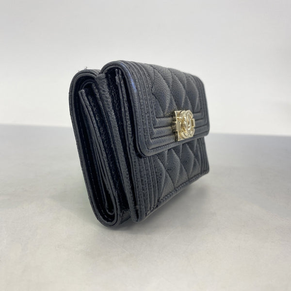Chanel Boy\'s Caviar Leather Tri-fold Wallet in Black Champagne