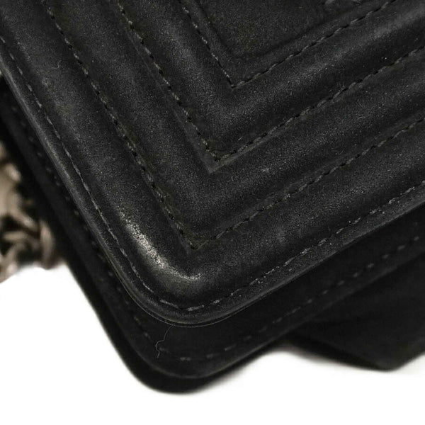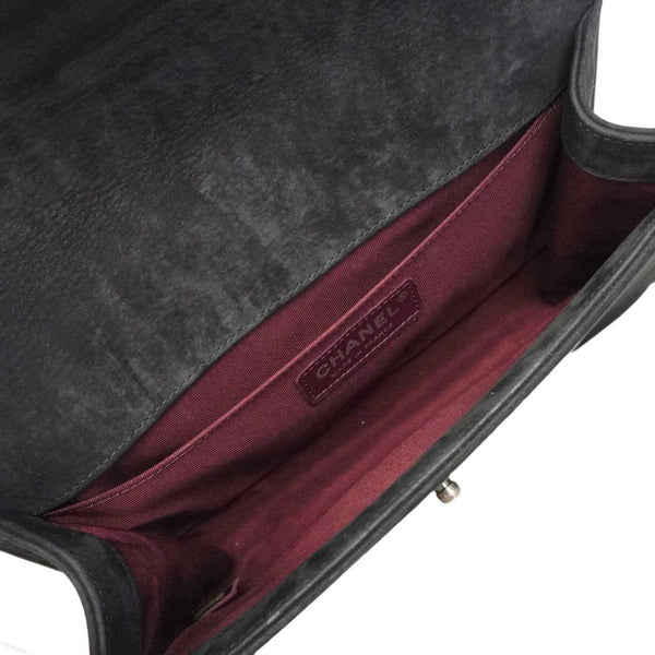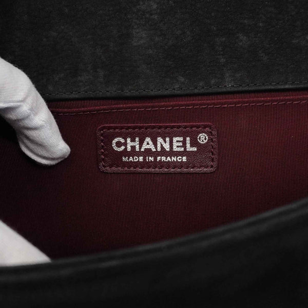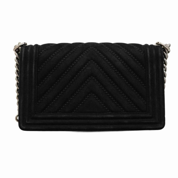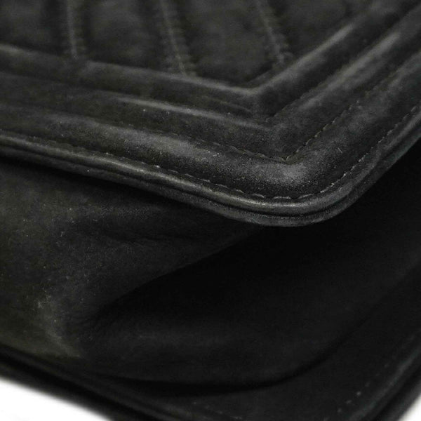 Chanel Boy Shoulder Bag, V-Stitch Chain Suede, Black, Women\'s