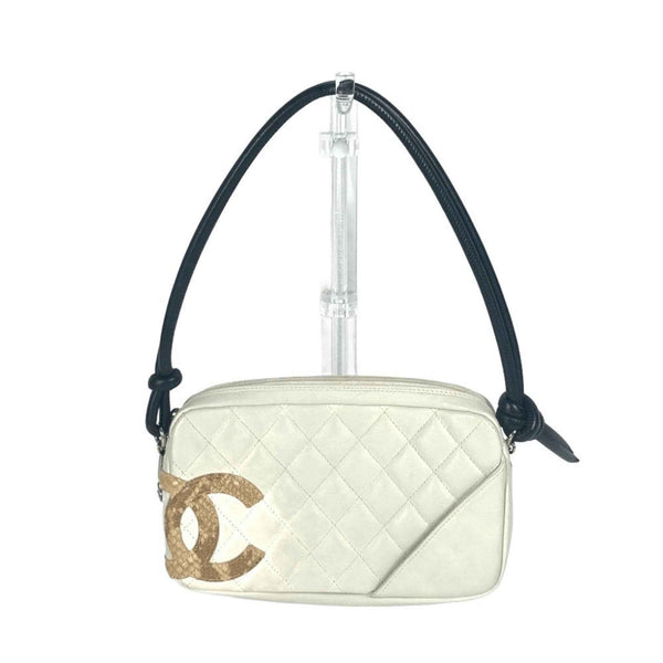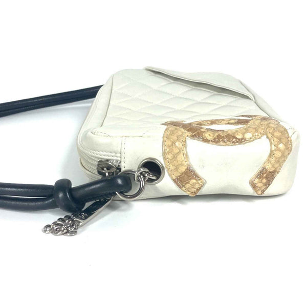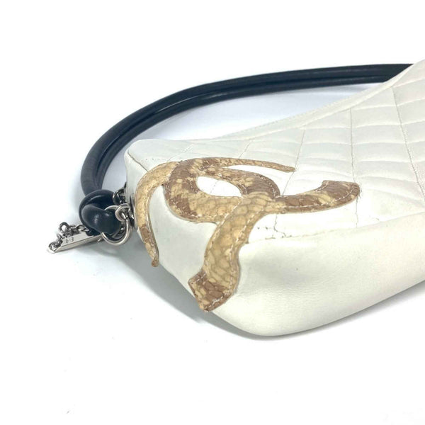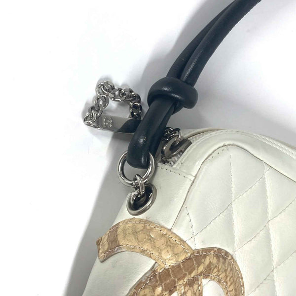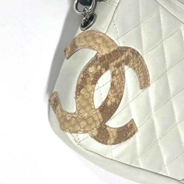 CHANEL Cambon CC Coco Mark Logo Shoulder Bag in Leather/Python Leather, White
