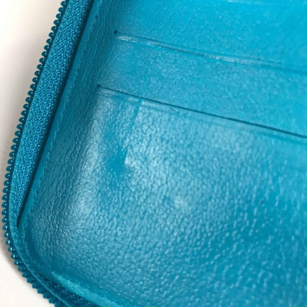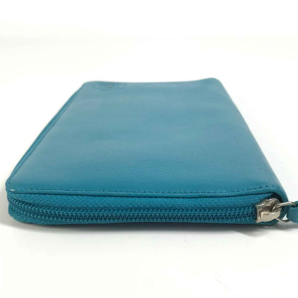 CHANEL Camellia CC Coco Mark Round Zipper Long Wallet Leather Women\'s Blue