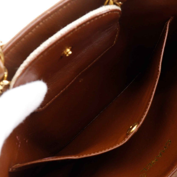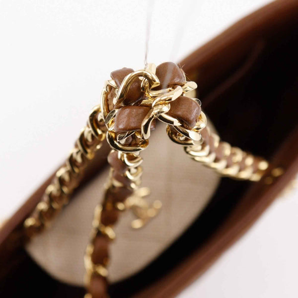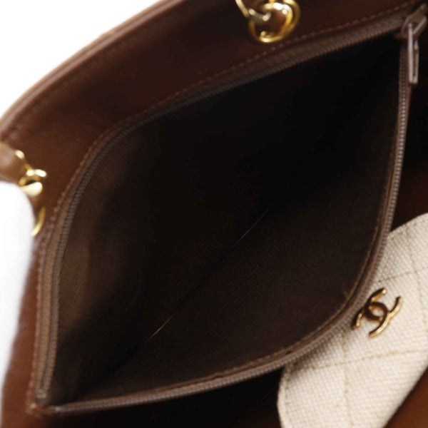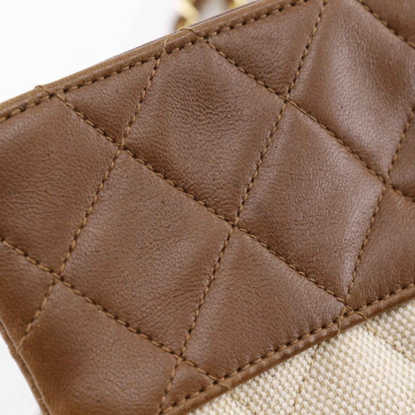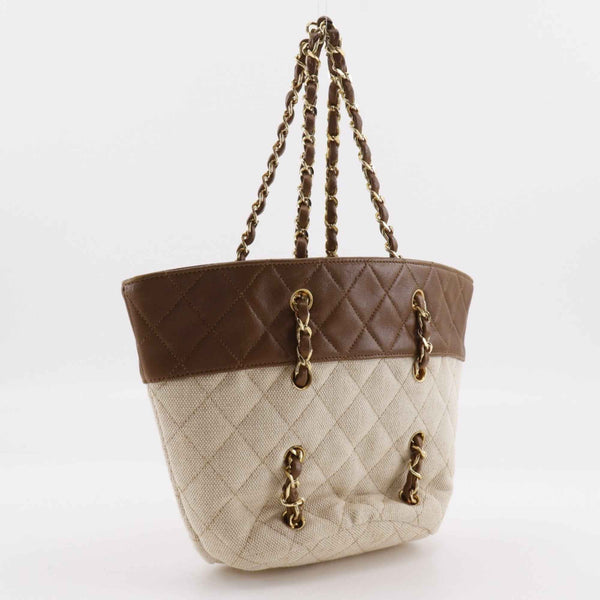 CHANEL Chain Bag, Matelasse Canvas and Leather Handbag, Brown, Women\'s