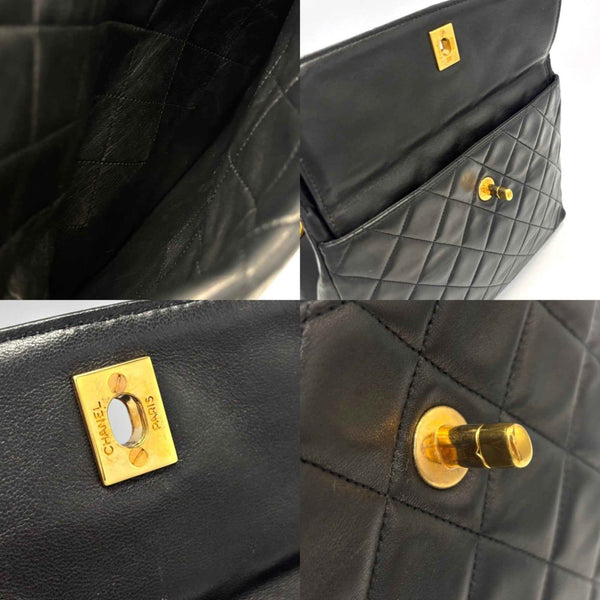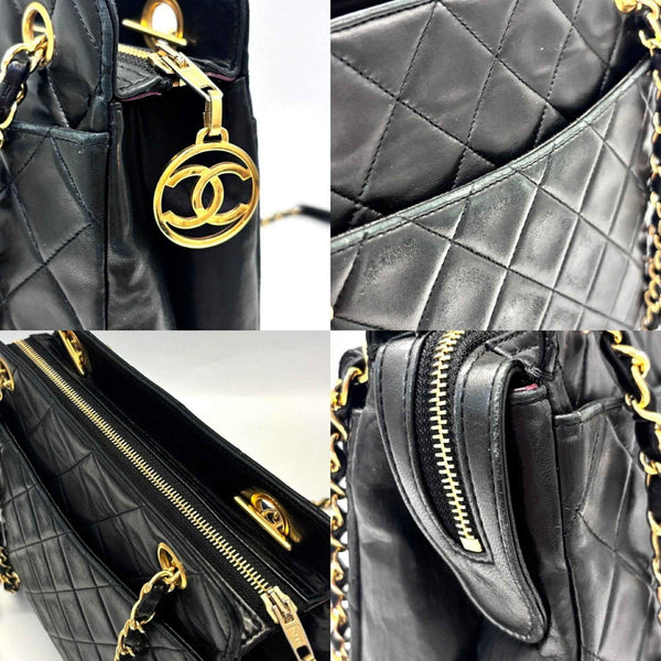 CHANEL Chain Tote Matelasse Shoulder Bag in Black Lambskin