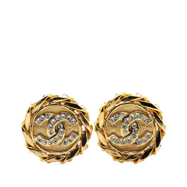 Chanel Coco Mark Chain Earrings, Gold Plated with Rhinestones, Women\'s, CHANEL