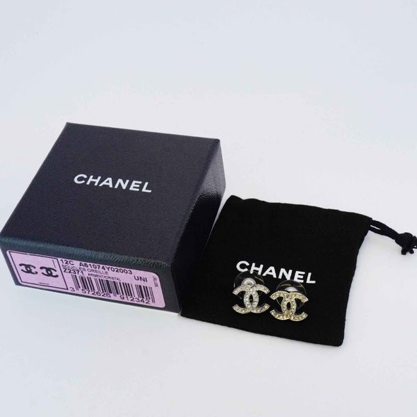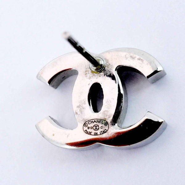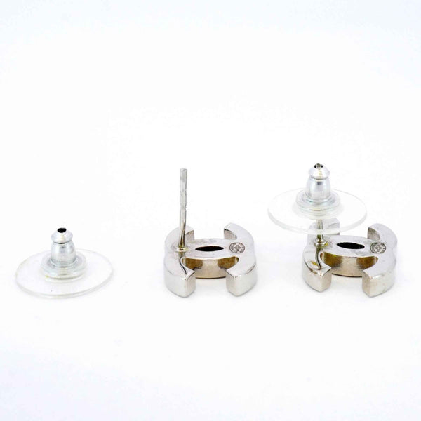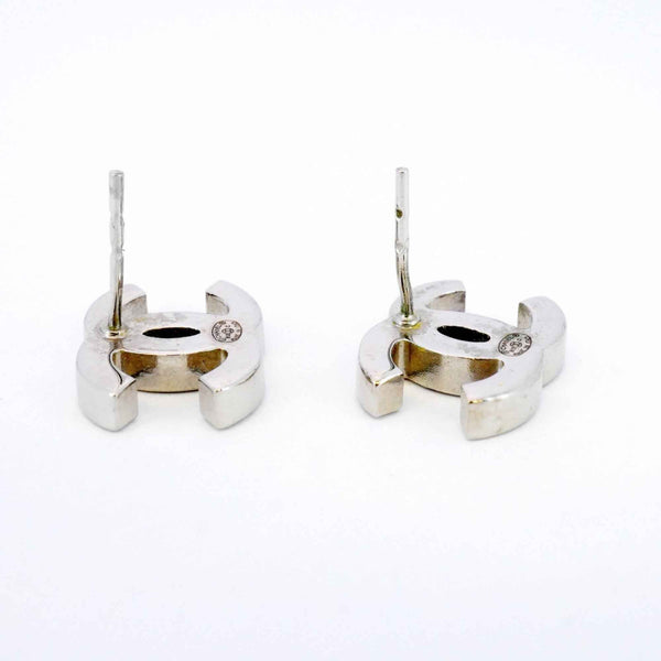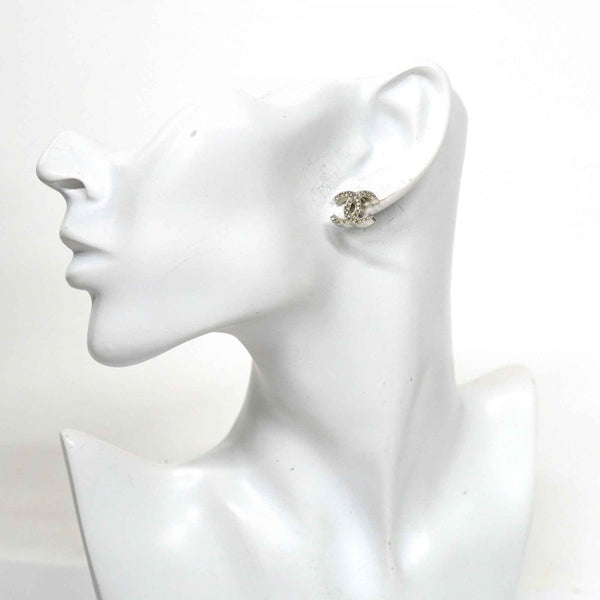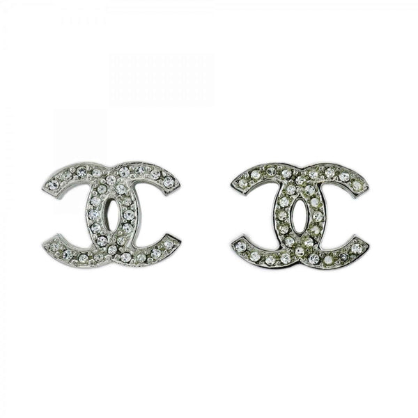Chanel Coco Mark Metal Rhinestone Silver Earrings for Women