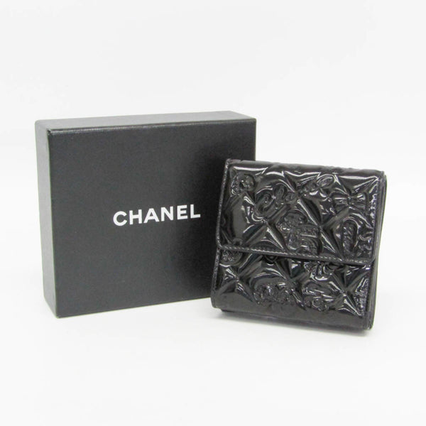 Chanel Icon Women\'s Patent Leather Wallet (tri-fold) Black