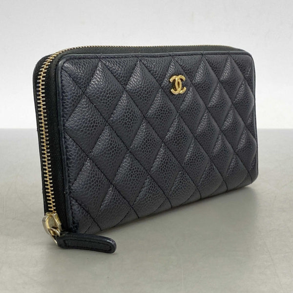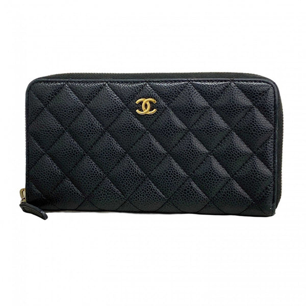 Chanel Matelasse Caviar Leather Long Wallet, Black, Women\'s