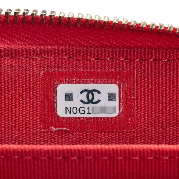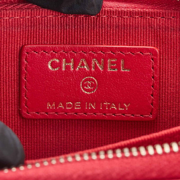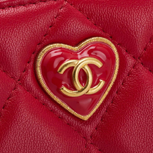 CHANEL Matelasse Coco Mark Heart Round Zipper Coin Case Red Lambskin Women\'s