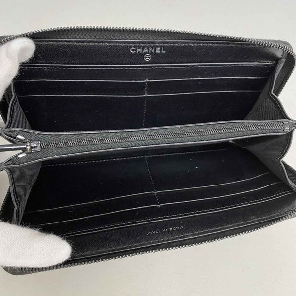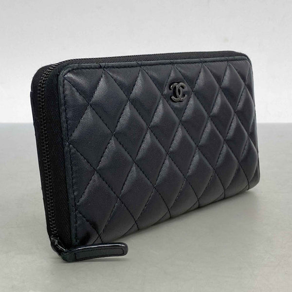 Chanel Matelasse Lambskin Long Wallet, Black, Women\'s, P1419643