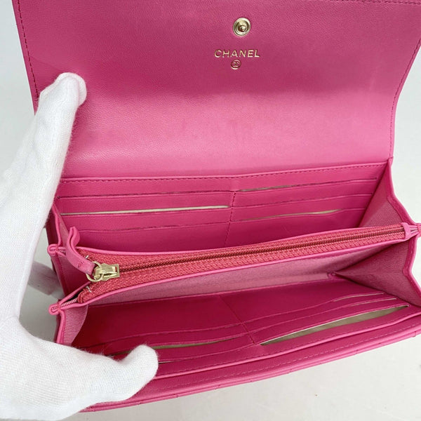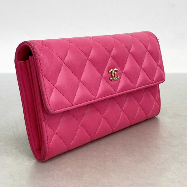 Chanel Matelasse Lambskin Long Wallet, Pink, Women\'s