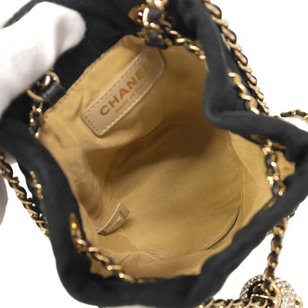 Chanel Matelasse Shoulder Bag with Chain Bag, Velvet, Black, Champagne, Women\'s