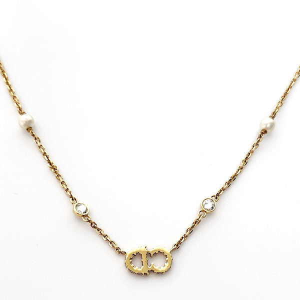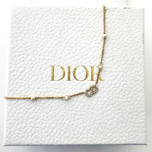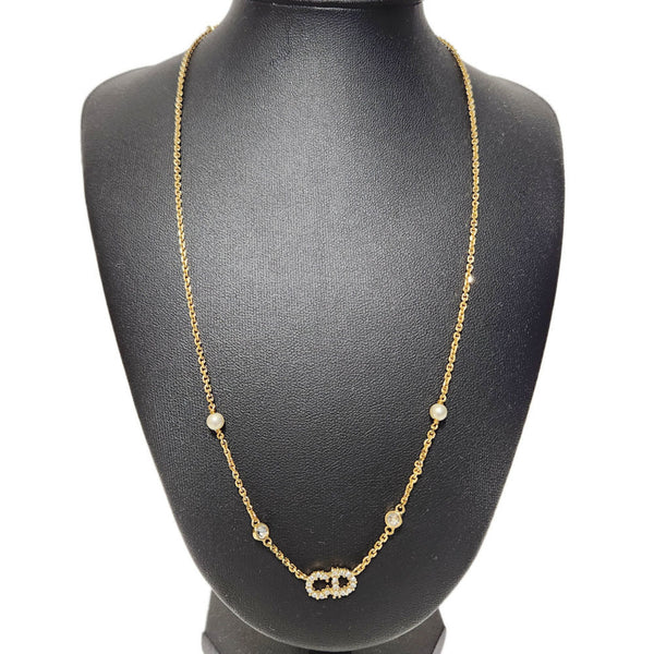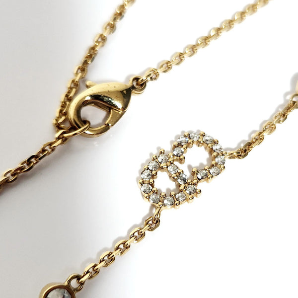 Christian Dior Clair D Lune Necklace, Gold Metal Rhinestone Choker Pendant for Women