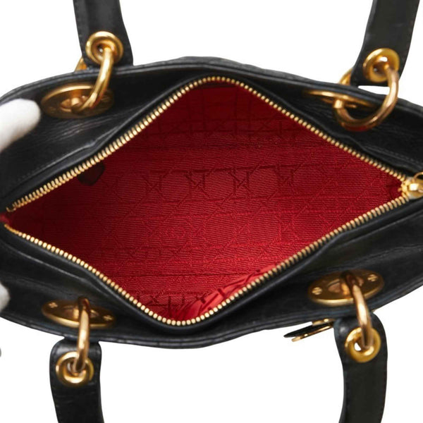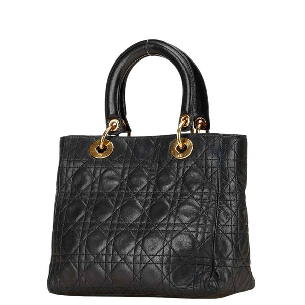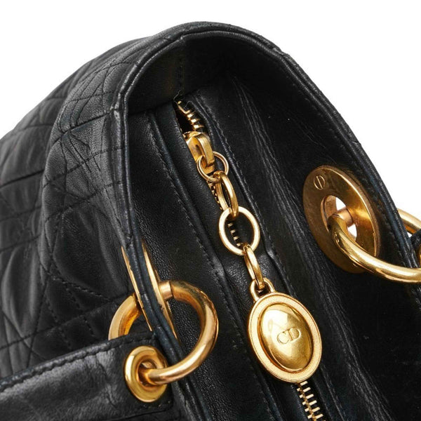 Christian Dior Dior Lady Cannage Handbag Black Leather Women\'s