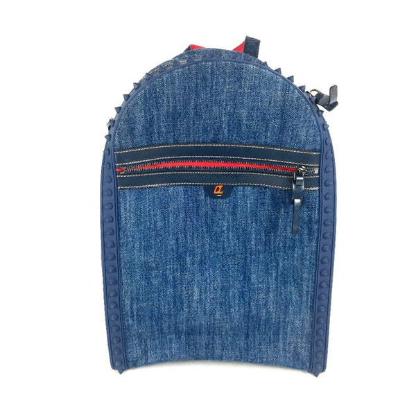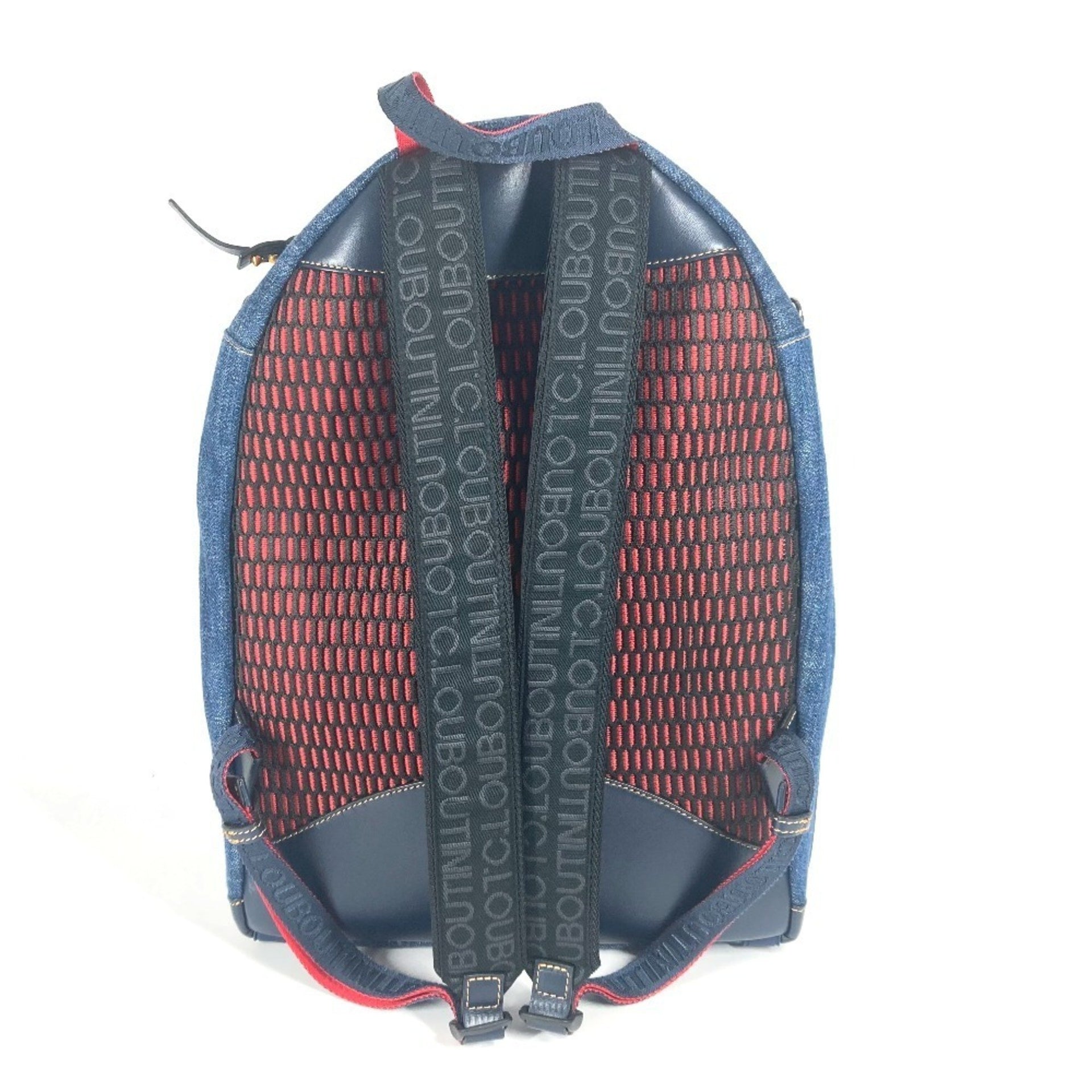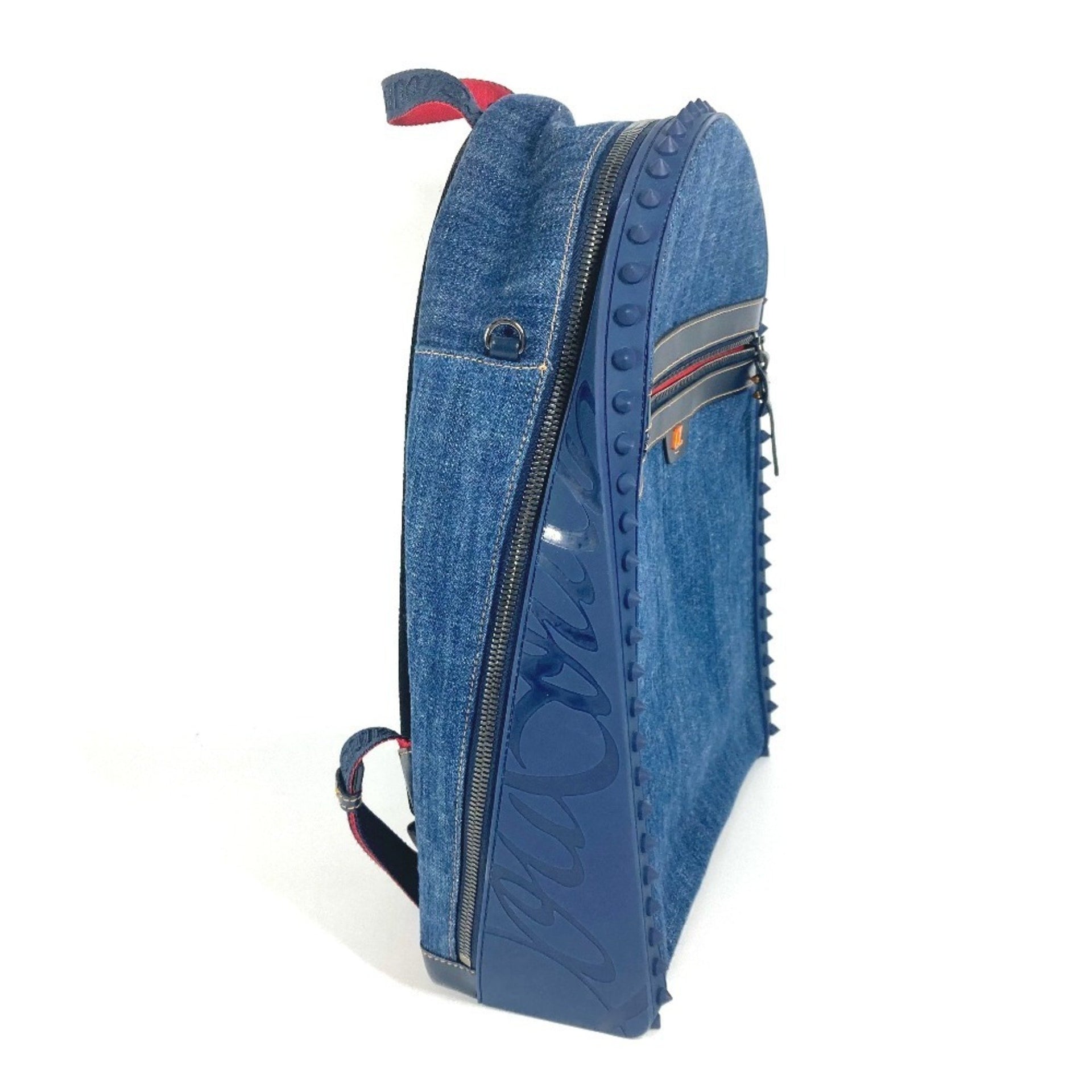 Christian Louboutin logo studded denim backpack in blue for men and women.