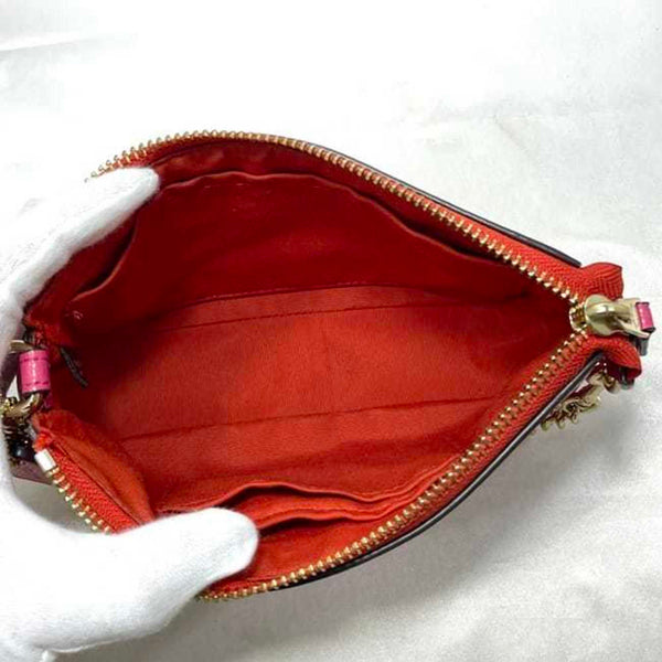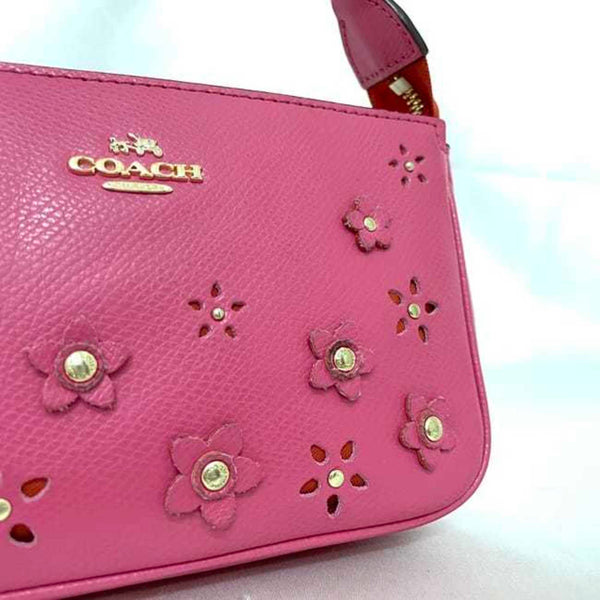 Coach Pouch ec-24044 Pink F65471 PVC Leather Studs COACH Chain Flower Women\'s