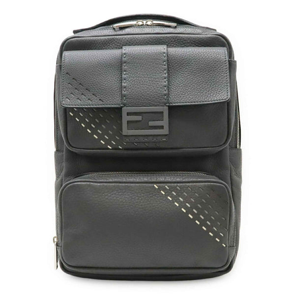 FENDI Selleria FF Backpack, Leather, Gray, Black, 7VZ047