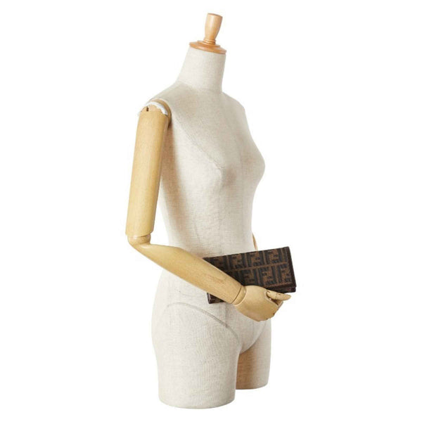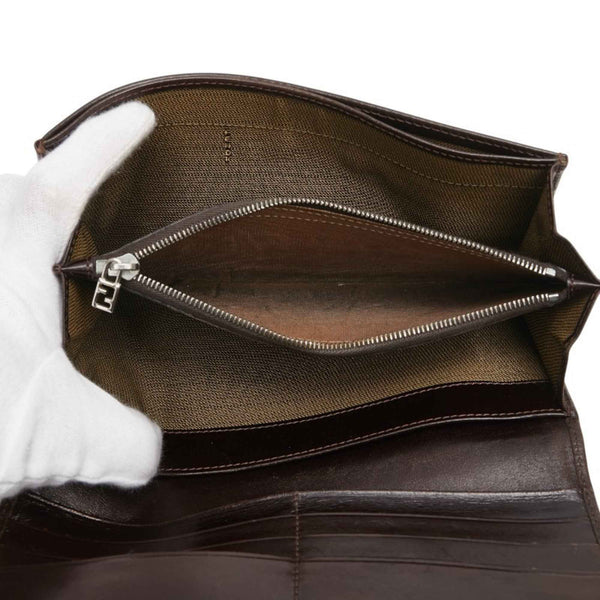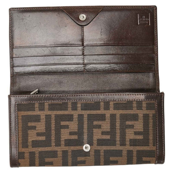 Fendi Zucca Long Wallet 30851 Brown Black Canvas Leather Women\'s FENDI