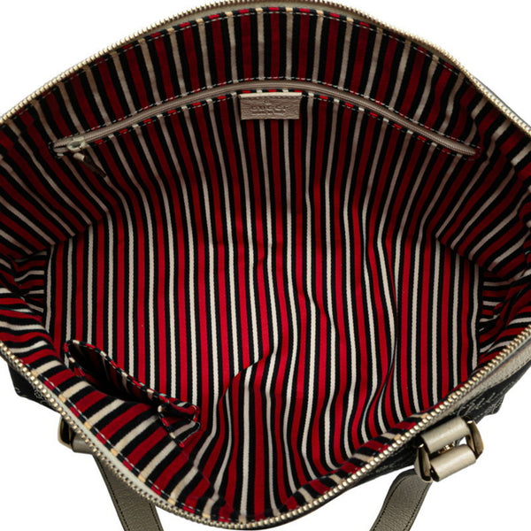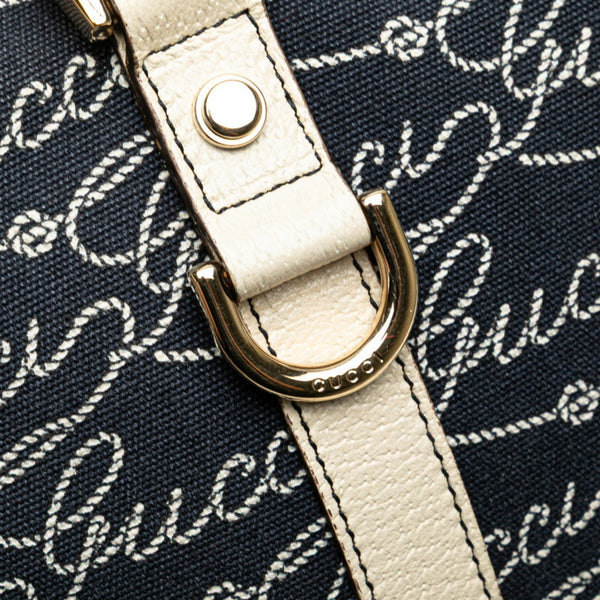 Gucci Abbey Logo Tote Bag 141470 Navy Beige Canvas Leather Women\'s GUCCI