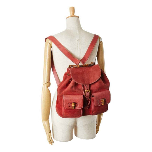 Gucci Bamboo Backpack 003.2058.0016 Red Brown Suede Leather Women\'s GUCCI