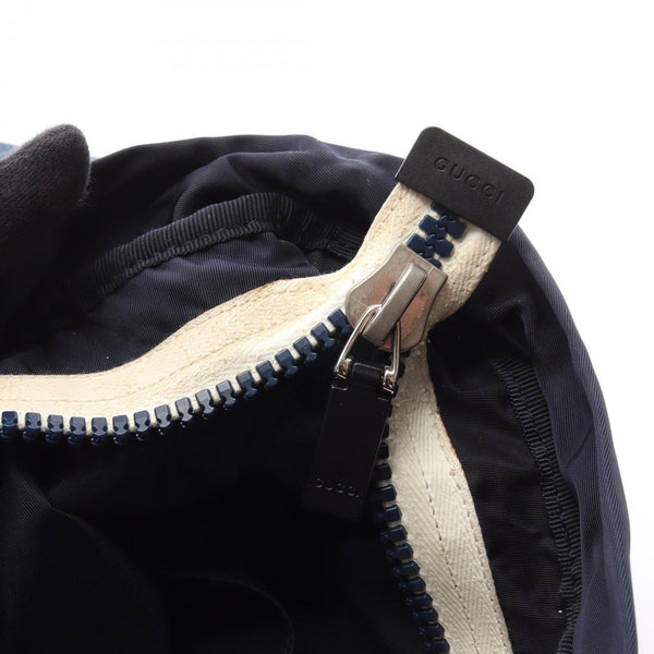Gucci Crest Shoulder Bag, Nylon and Leather, Women\'s, Navy White, 211095