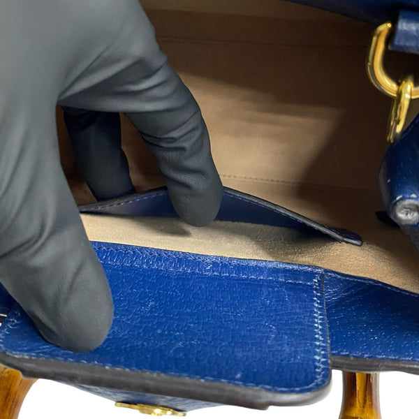 GUCCI Diana Tote Sherry Line Bamboo GG Logo Leather 3-Way Shoulder Bag/Handbag Navy 17468