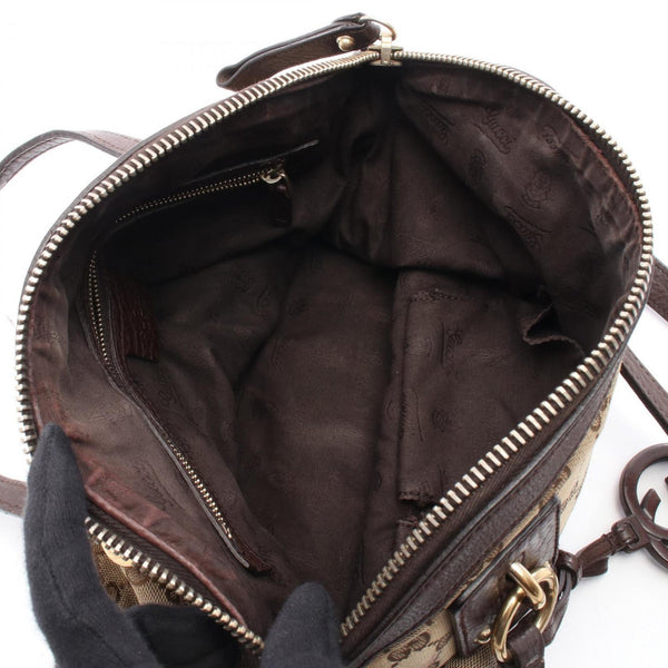 Gucci GG Canvas Interlocking G Handbag, and Leather, Women\'s, Beige Brown, 247279