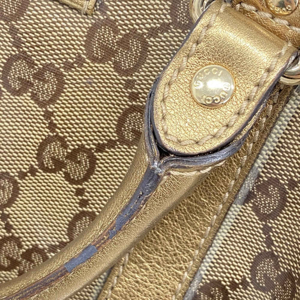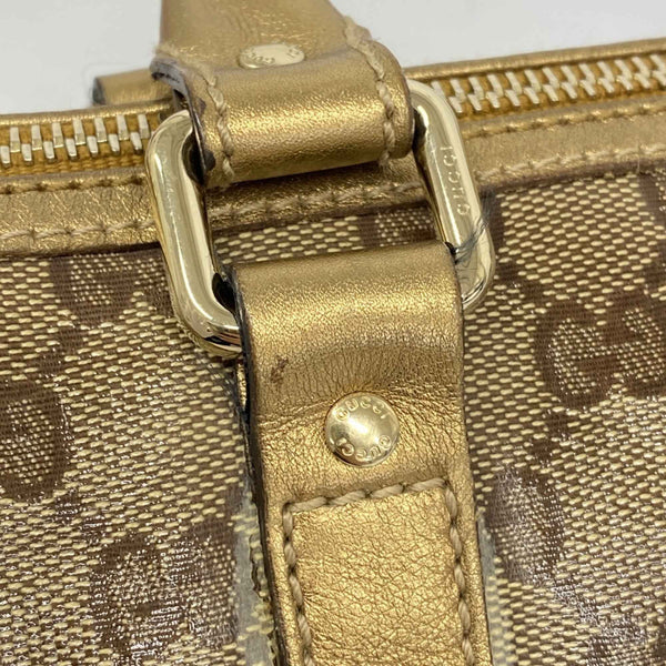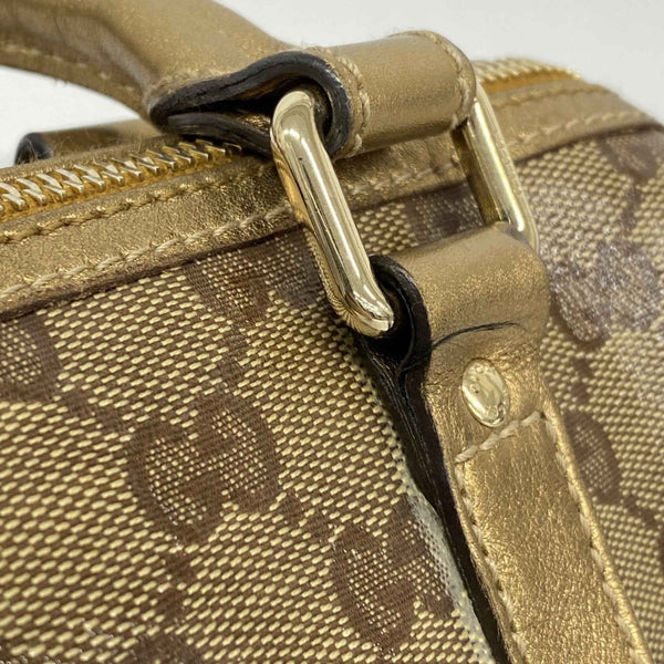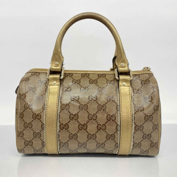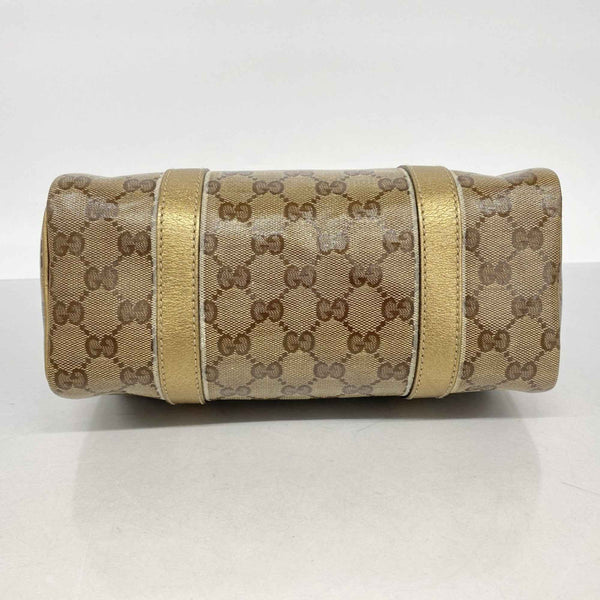 Gucci GG Crystal Handbag 193604 Coated Canvas Brown Gold Champagne Women\'s
