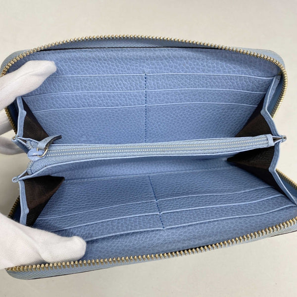 Gucci Interlocking G Long Wallet 449347 Leather Blue Champagne Women\'s