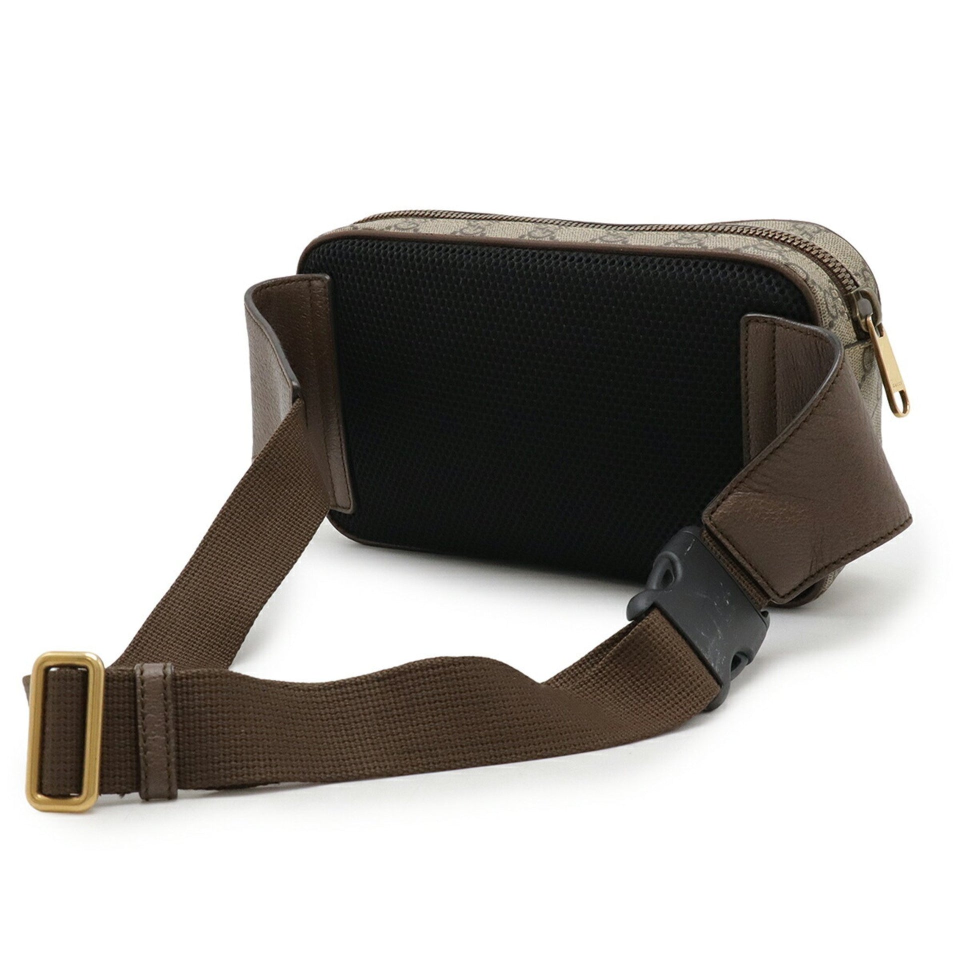 GUCCI Ophidia GG Supreme Belt Bag, Body Waist PVC, Leather, Khaki Beige, Mocha Brown, 574796