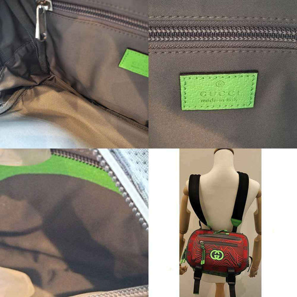Gucci Small Backpack in Gray, Red, and Green, GG Nylon Rubber, 2-Way Backpack/Waist Bag, 752100