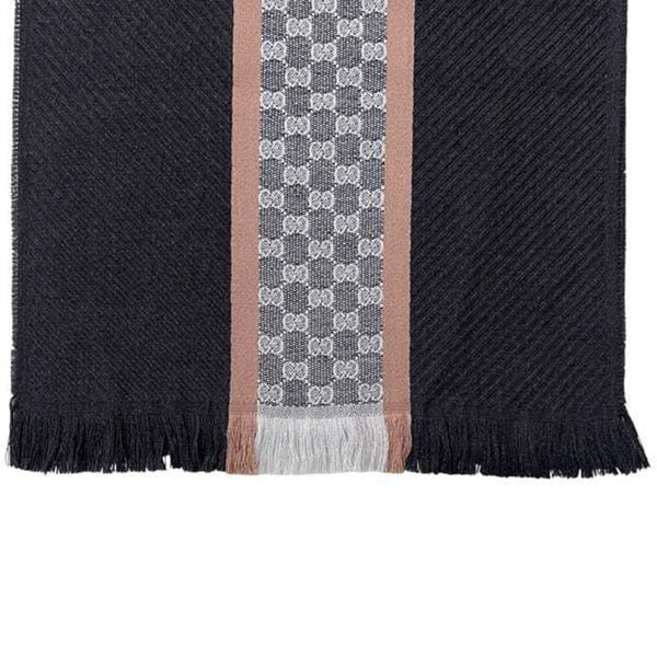 Gucci Stole ec-24138 Black Wool GUCCI GG Stripe Men\'s Women\'s Scarf Knee Cover