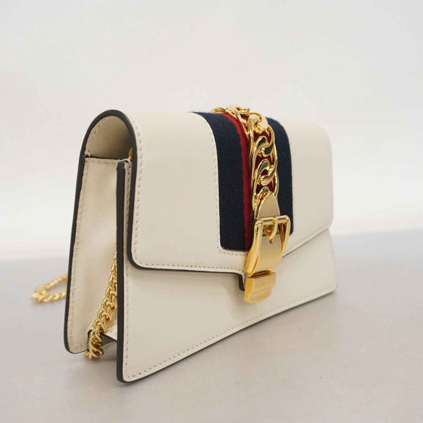 Gucci Sylvie Shoulder Bag 494646 Leather White Women\'s