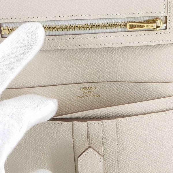 Hermes Hermès Bearn Compact Bifold Wallet, Epson Crepe, W Stamp, Gold Hardware