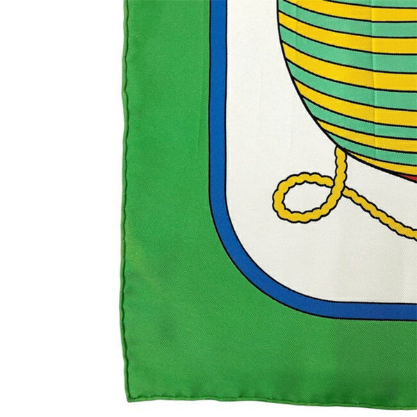 Hermes Hermès Carré 90 Scarf (ec-23773) in green, blue, and white. This 100% silk scarf features a boat motif small design. Also available: large, from the collection.