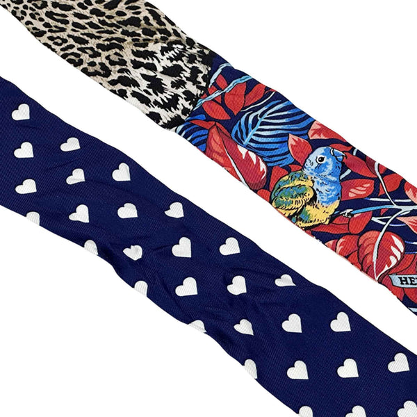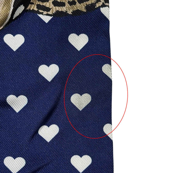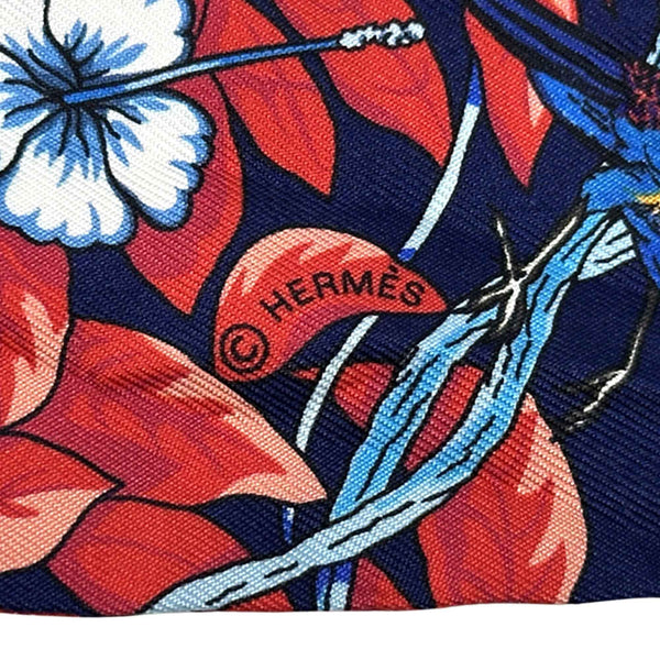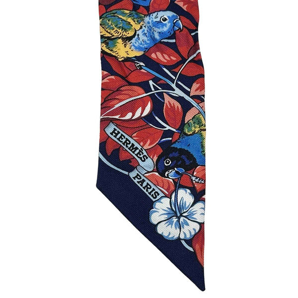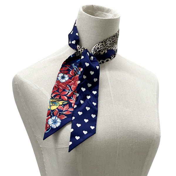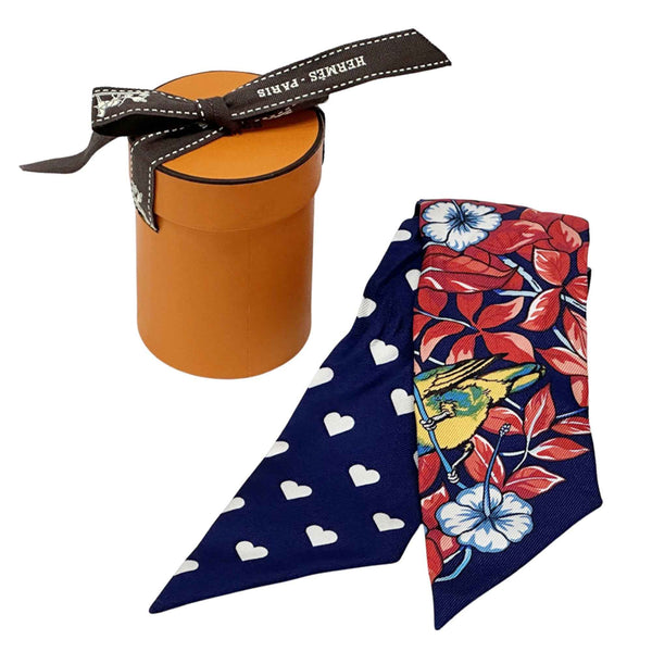 Hermes Hermès Jungle Love Twilly Scarf/Muffler, Women\'s, Silk, Navy Blue, Multicolor, Heart Print, Leopard, Animal, Bird