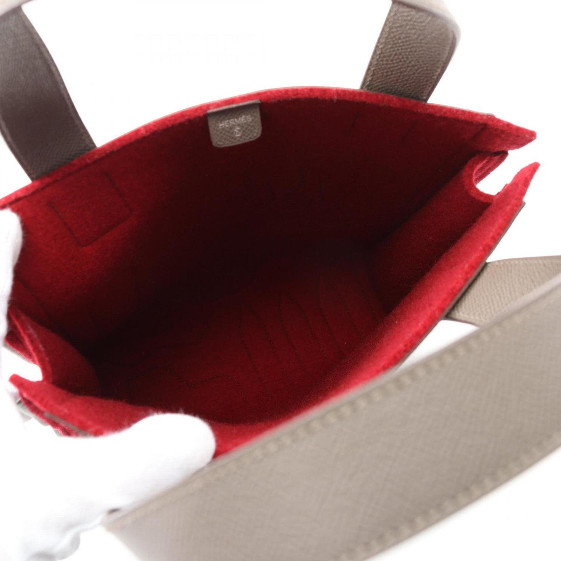 Hermes Hermès Petit H Etoupe Tote Bag, Epsom Felt, Women\'s, Brown and Red