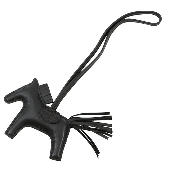 Hermes Hermès Rodeo PM Touch Bag Charm, Black Lambskin with Alligator Matte Z Stamp