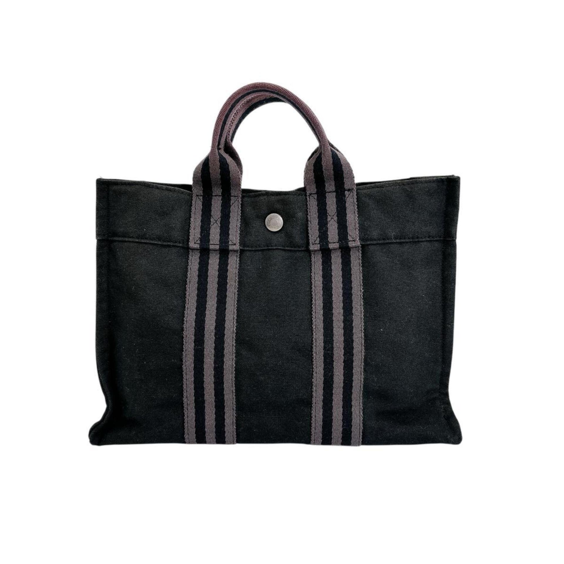 Hermes HERMES Tote Bag Handbag Canvas Foule PM Cotton Black