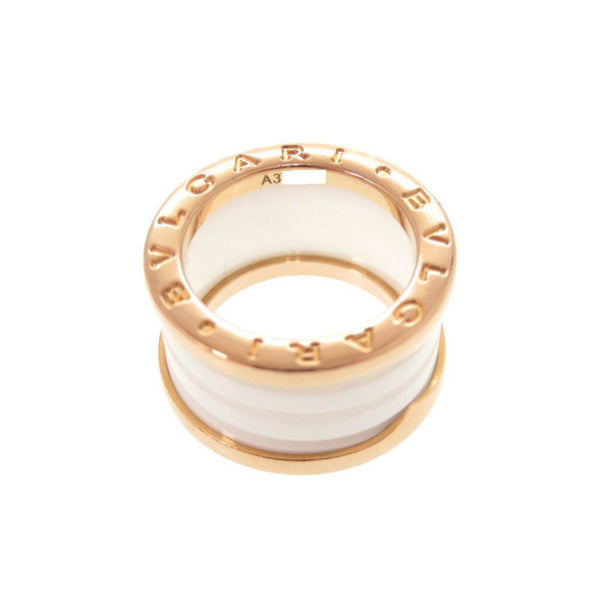 Like new Bvlgari B-ZERO1 4-band ring in 18KPG, 750PG, white ceramic, #49 pink gold, 1662BVLGARI