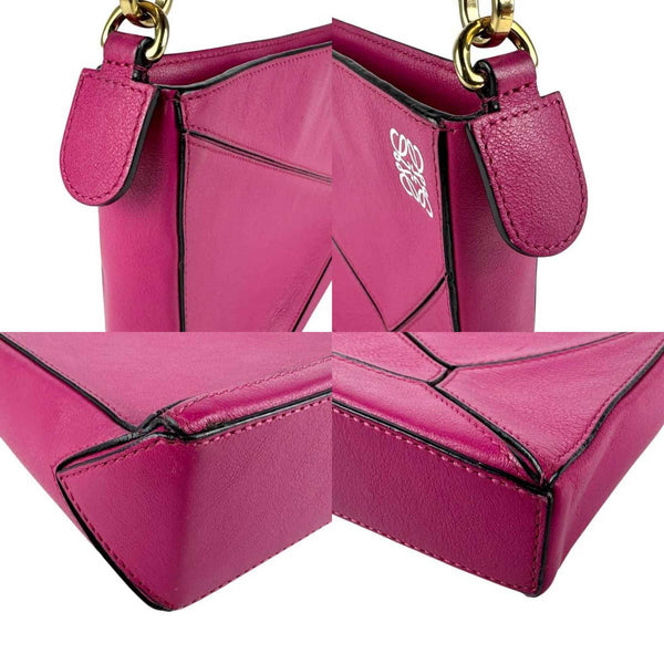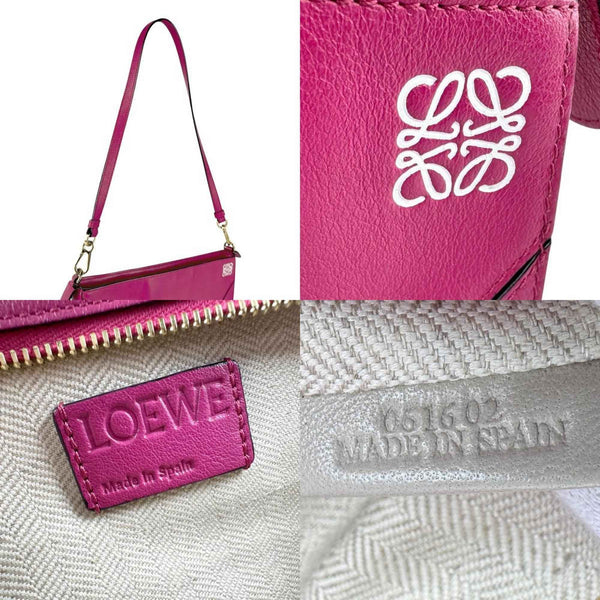 LOEWE Puzzle Pouch Shoulder Bag in Magenta and Gold Leather, Women\'s, Z6997