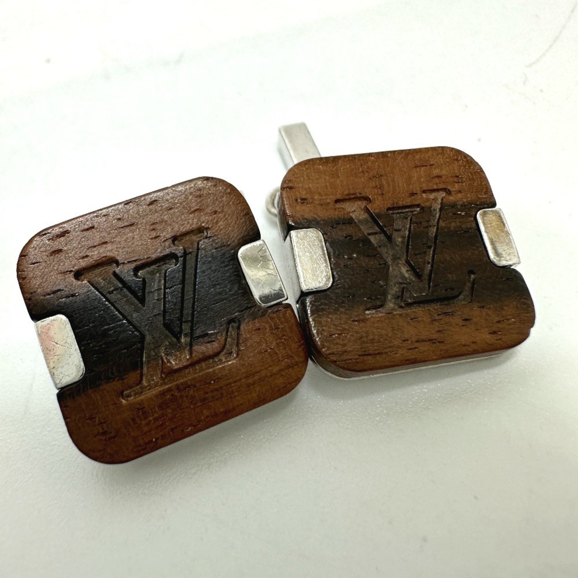 LOUIS VUITTON LV Logo Accessory Cufflinks, Wood, Stainless Steel, Men\'s, Brown