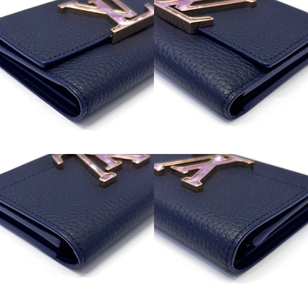 Louis Vuitton Portefeuille Capucines Compact Navy Leather Tri-fold Wallet RFID M81674 LOUIS VUITTON