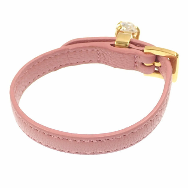 Miu Miu Miu Heart Motif Bracelet for Women, Crystal and Leather, Pink, A6051241