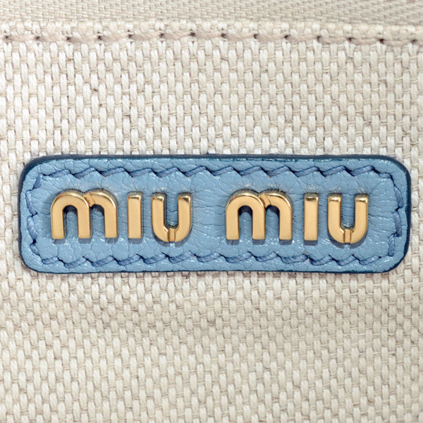 Miu Miu Miu Madras Tote Bag Leather 5BG264 Sky Blue