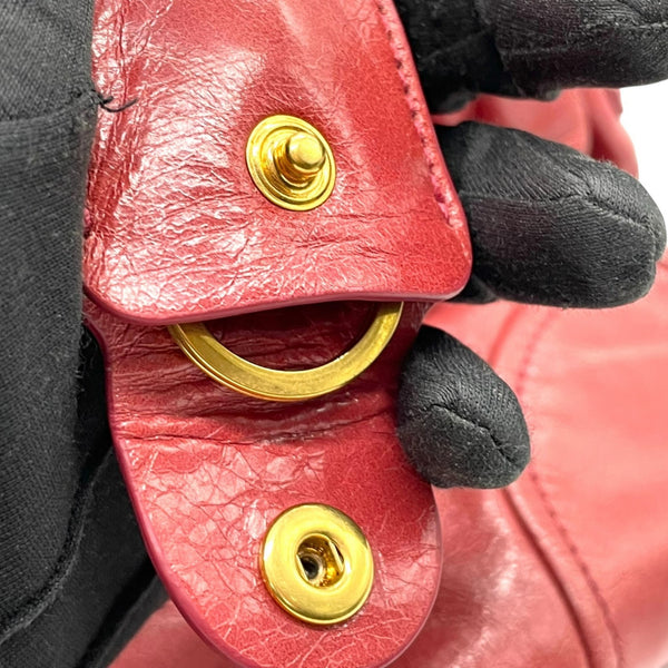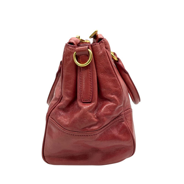 Miu Miu Miu VITELLO SHINE 2-Way Red Tote Bag K5, a pink leather handbag and tote bag.